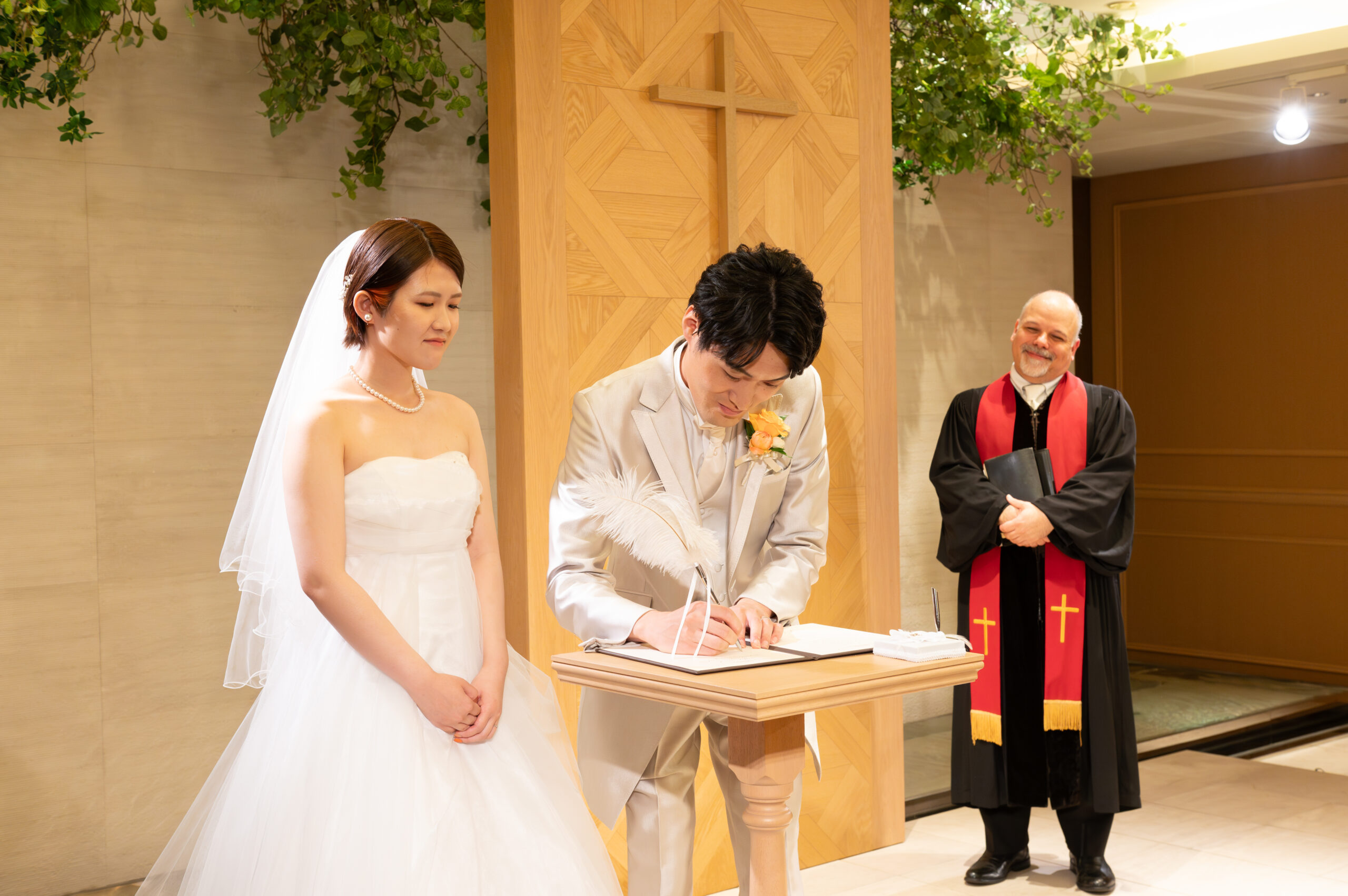 そして指輪交換や結婚証明書署名と続き